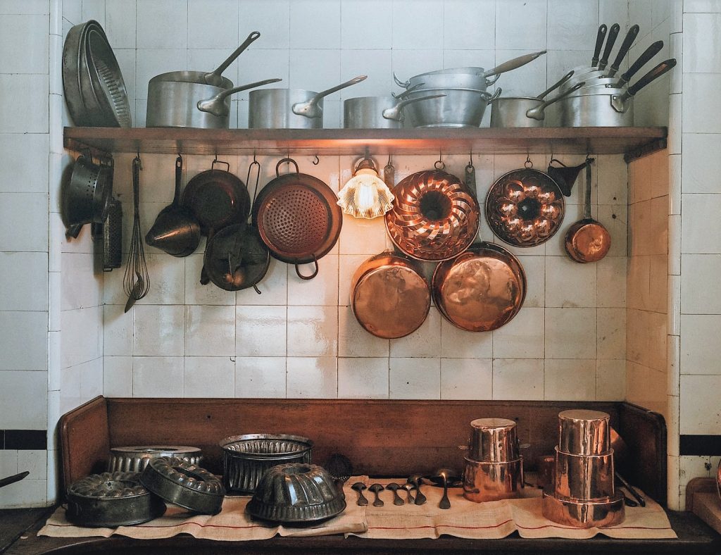 Los utensilios de cobre están a la última moda, tanto como por su fabuloso color entre rosado y rojizo, como por sus prestaciones. Bien cuidado, es un material que puede durar años, y da un toque especial en cocinas campestres o rústicas. Son muy comunes los cazos y las calderas de cobre pero también los moldes de repostería, que pueden ir colgados o bien expuestos en baldas. Para que éstos no resulten tóxicos, siempre deben tener un recubrimiento que proteja a los alimentos.