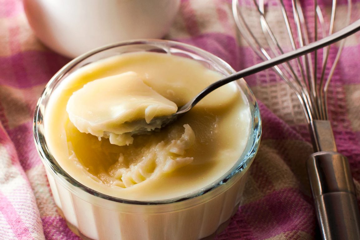 Una receta rápida de crema pastelera sin huevo y sin gluten, ideal para uso en recetas de repostería.