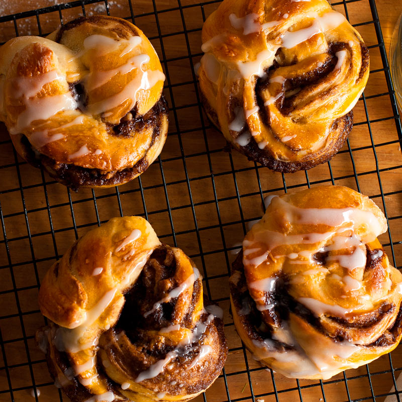 - Dejar enfriar en una rejilla. Una vez fríos, tomar un tenedor y echar el glacé en forma de hilos sobre los Babka.