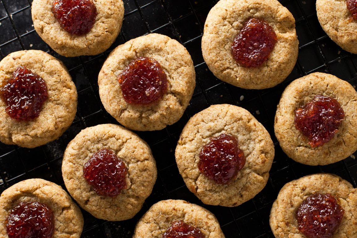 Esta sencilla receta de galletas huella del pulgar (thumbprint en inglés), también conocidas como galletas suecas o pepas de membrillo en Argentina no llevan lactosa y son muy rápidas de hacer.