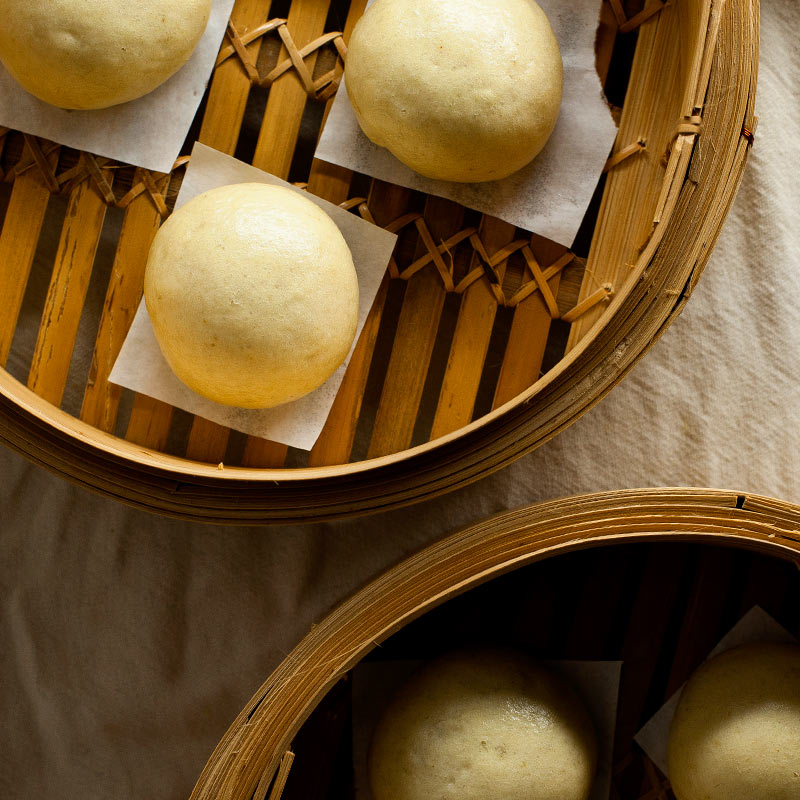 - Formar bollos y estirarlos con un rodillo. Rellenar cada manju con 20 gramos de anko y cerrar uniendo la masa. Colocar los manju en una vaporera de bambú.