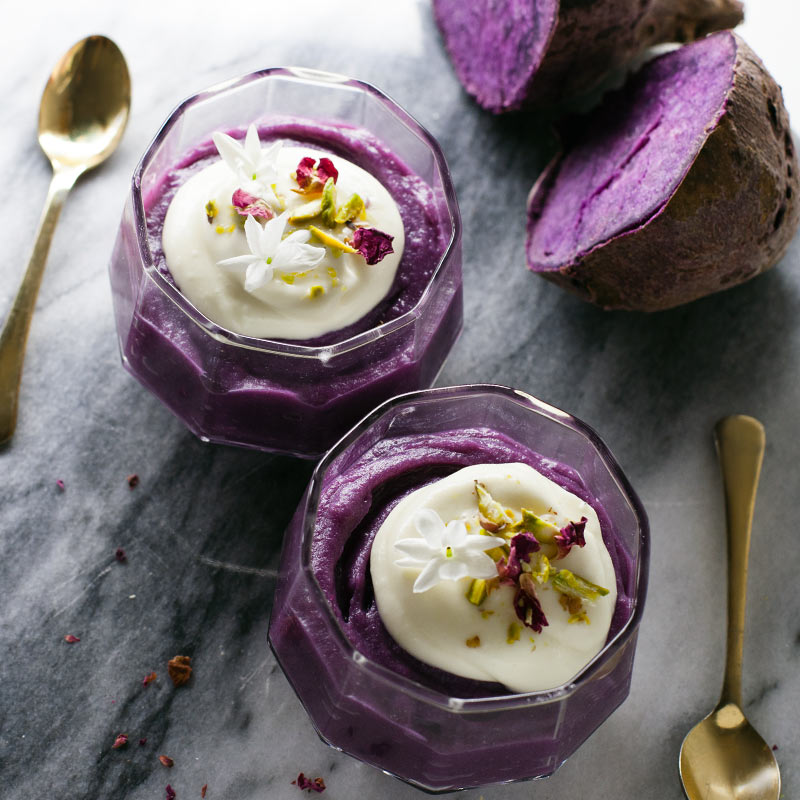 Mousse de boniato púrpura o batata morada