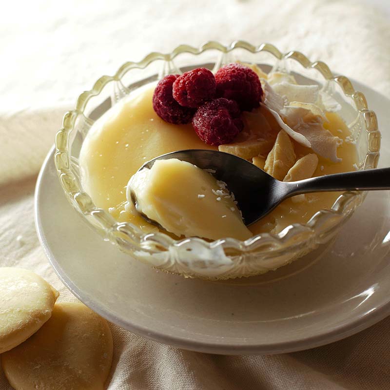 *Es posible reemplazar la leche de vaca por leche de coco, y el chocolate blanco por manteca de cacao para obtener un postre vegano.