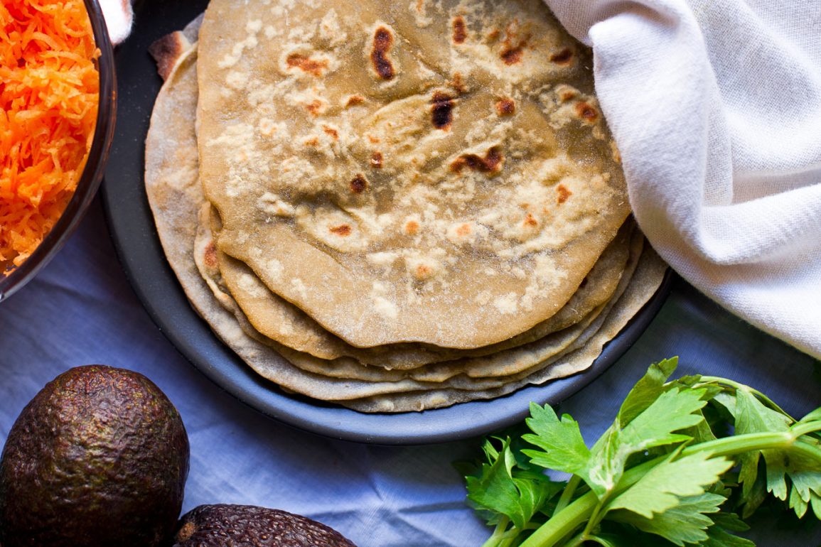 Inspirados en los roti hindúes, esta receta de panes de boniato (¡de tan solo 2 ingredientes!) no lleva levadura, por lo tanto tampoco tiempo de levado. Estos panes planos son ideales para armar wraps de vegetales veganos o hacer quesadillas veggies.