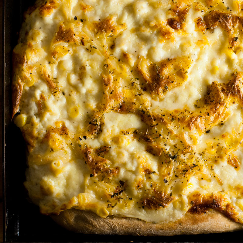 Una receta vegetariana rápida y sencilla, con salsa bechamel y maíz (choclo). La masa casera esponjosa es ideal para principiantes y leva mientras se cocina el relleno de la pizza, por lo que no hay que aguardar tiempo extra.